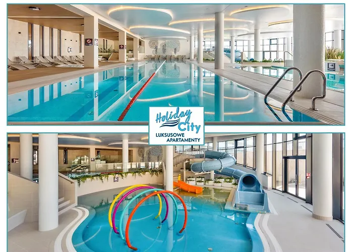 Localizado a 25 minutos a pé de Kołobrzeski Skansen Morski, o apartamento Apartament Miami B101-Polanki Aqua-Holiday City apresenta sauna, escorregas aquáticos e átrio. Os hóspedes também podem visitar Cais de Kołobrzeg a 10 minutos de distância.